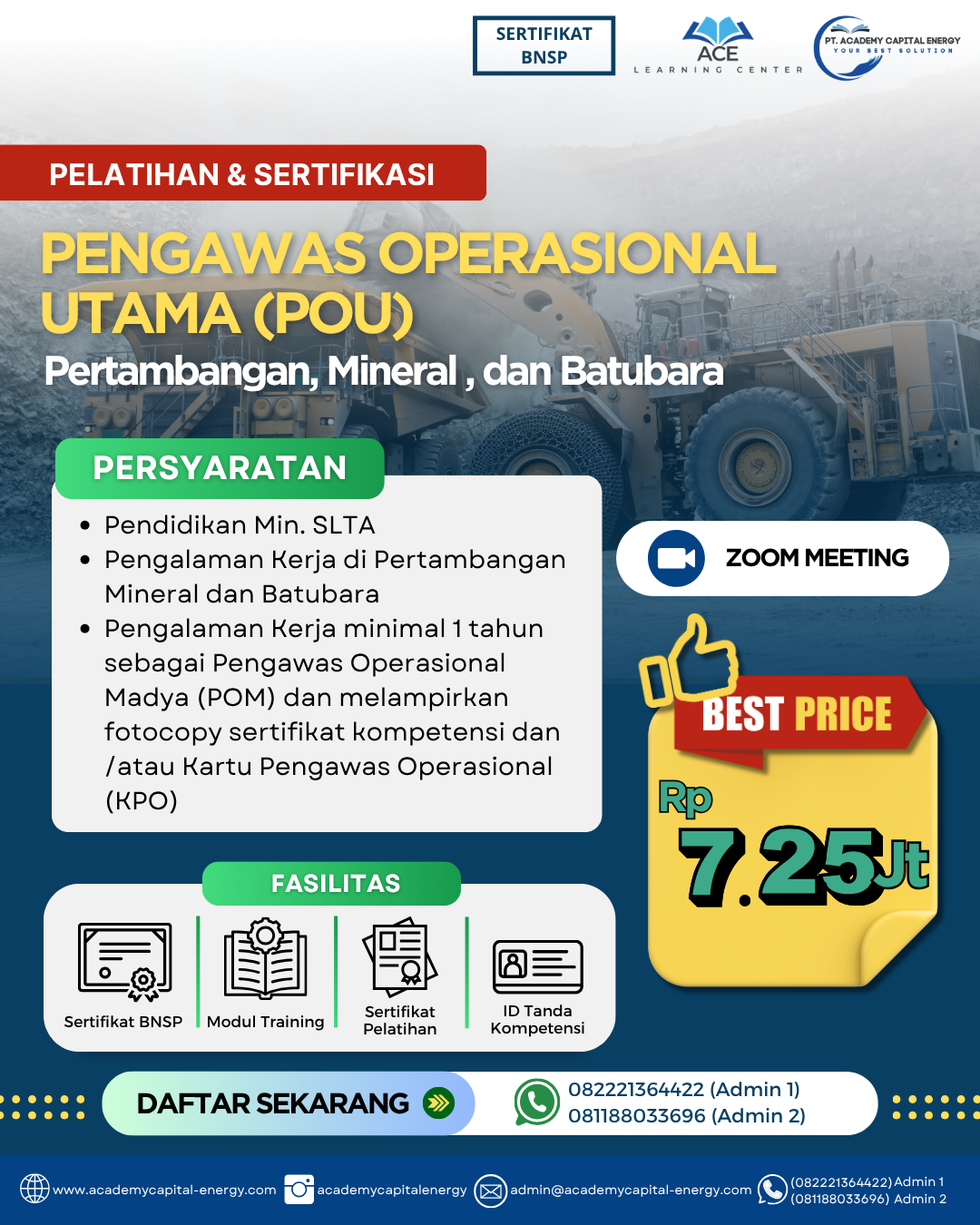 Program ini dirancang sesuai dengan ketentuan dari Direktorat Jenderal Mineral dan Batubara, Kementerian ESDM, dan menjadi syarat wajib bagi para calon pengawas operasional utama di perusahaan tambang.